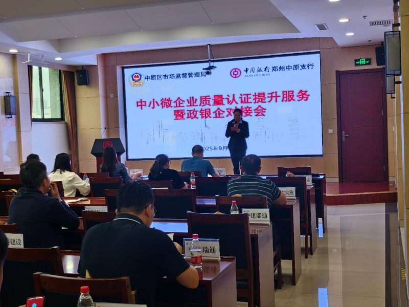 随后,中国银行郑州中原支行相关负责人围绕“认证贷” 产品进行详细解读,从申请条件、额度范围、利率优惠、审批流程等方面,向参会企业清晰介绍了“认证贷”如何以企业质量认证结果为核心增信依据,降低中小微企业融资门槛、简化融资手续的具体举措,并现场承诺将为符合条件的认证企业开辟“绿色审批通道”,切实提升融资服务效率。